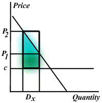 (p0-c) [Dx1 + Dx2] > DW > (p1-c)Dx1 + (p2-c)Dx2 In this expression, Dx1 denotes the change in the demand for the good in market 1.