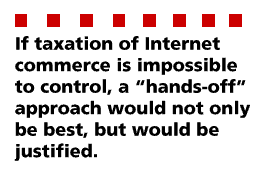 A very persuasive argument is possible however, that if taxation of Internet commerce is difficult to impossible to control, a "hands-off" approach would not only be best, but would be justified. One of the objectives of tax policy is to provide the government with revenue for a variety of programs and maintenance of the internal infrastructure. Individuals and businesses are said to benefit from these government expenditures, and therefore owe a duty to contribute a portion of their earnings and profits. A traditional department store avails itself of the protection that government offers through police, regulation, and the civil courts. A store also uses the infrastructure such as roads and electricity that a government usually makes possible. In the case of Internet commerce however, very little if any of these benefits are necessary.