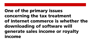 One of the primary issues concerning the tax treatment of Internet commerce is whether the downloading of software will generate sales income or royalty income [ 54 ]. Computer software can be viewed as either goods, a service, or intellectual property thereby creating a characterization problem when interpreting both domestic withholding tax and treaty provisions [ 55 ].