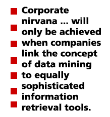 In our opinion, corporate nirvana in the use of data mining tools and data warehousing will only be achieved when companies link the concept of data mining to equally sophisticated information retrieval tools. These tools will work on the basis of combined machine and human intervention in more intelligent ways than those presently offered in to day's information retrieval tools. Corporations will need to run two complementary data/information retrieval processes. One process will literally mine data and allow software to detect hidden patterns. Another process will query information through the posing of specific questions and secure targeted answers.