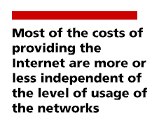 In terms of costs, it is possible to argue that most of the costs of providing the Internet are more-or-less independent of the level of usage of the networks; that is, most of the costs are fixed. The incremental cost of sending additional packets is essentially zero, if the network is not saturated (Mackie-Mason and Varian, 1994).