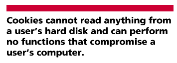 One major problem with this process is that the use of cookies has never been regulated. Although cookie technology is old by Web standards - its potential has existed since the inception of Netscape Navigator 1.1 in March 1995 - this technology initially went almost unnoticed because it was merely intended to be a way to personalize a Web site during the time of a visit and not stored on the user's computer [ 6 ]. The cookie defaults can be overwritten, however, and the original inoffensive nature of cookie technology has led to options that were never really intended. It must be understood, however, that the physical danger of cookies has been greatly exaggerated: Cookies cannot read anything from a user's hard disk and can perform no functions that compromise a user's computer [ 7 ].