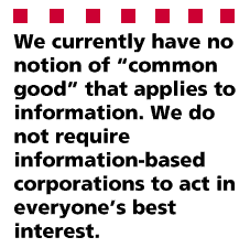We currently have no notion of "common good" that applies to information. We do not require information-based corporations to act in everyone's best interest. Britain might soon have a freedom of information act, and it will be interesting to see what "common good" it actually promotes.