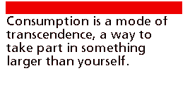 The product, no longer able to offer satisfaction on its own ground ("a potato chip is a chip is a chip"), instead offers the consumer a chance to be part of a certain 'crowd' or 'scene.' They belong to a cool "product tribe," revelling in the image and sensibility that the product somehow mystically confers - the fetishism of commodities, hyperaccelerated for Generation X. Analysts of postindustrial America suggest this is the secret hidden within these advertising campaigns - that more and more people are being sold style, image, and celebrity, since there is no substance or material satisfaction to the product-in-itself. Concealed within the jump-cut flash of postmodern advertising is a simple code: consumption is a mode of transcendence, a way to take part in something larger than yourself, "the Pepsi Generation."