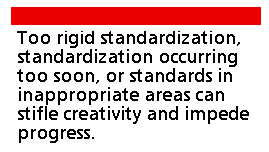 Another argument against standardization is the need to allow for innovation and experimentation. This is particularly valid in the development of digital libraries, where the technological environment is rapidly changing and the most fruitful approaches to many of our problems are far from clear. Computer scientists, researchers, and developers are especially sensitive to the fact that too rigid standardization, standardization occurring too soon, or standards in inappropriate areas can stifle creativity and impede progress. Think of what the world would look like today if we had standardized the Gopher protocol in the early 1990s.