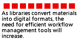 As libraries convert materials into digital formats, the need for efficient workflow management tools will increase. The significant human labor required for editing, inspecting, correcting, and "tagging" (with appropriate metadata) digital objects might inhibit libraries and other organizations from initiating large-scale digitization efforts. By developing the framework of workflow management tools, semi-automated tools will reduce the resource requirements for implementing large-scale digitization projects and provide enhanced search functionality.