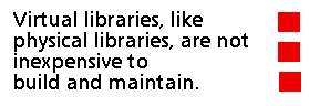 Though implied directly or indirectly throughout the discussion, labor savings deserves its own category of concern. VLs, like physical libraries, are not inexpensive to build and maintain. While we believe academic VLs will become crucial in modern scholarly research and education and will have an expanding role among the array of services which serious library systems routinely provide, it is vital that production and maintenance costs be lowered.