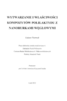 Tytuł: Wytwarzanie i właściwości kompozytów polilaktydu z nanorurkami węglowymi