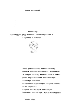 | Bałczewski, Piotr., 1985, Fosfoniany zawierającegrupy siarko- i krzemoorganiczne - synteza i przemiany | Feb 20, 2015 |