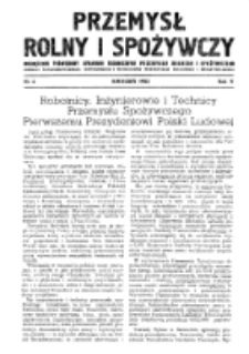 Od R. 4, Nr 4 (1950) do R. 7, Nr 7 (1953) dod. do tyt. : miesięcznik poświęcony sprawom technicznym przemysłu rolnego i spożywczego. ; Od R. 5, Nr 1 (1951) współwyd. dod. : "Biuletyn Głównego Instytutu Przemysłu Rolnego i Spożywczego". ; Od R. 4, Nr 9 (1950) współwyd. dod. : "Przegląd Bibliograficzny Przemysłu Spożywczego". ; R. 3, Nr 8/10 (Sierp./Paźdz.1949)-R. 8, Nr 12 (1954).
