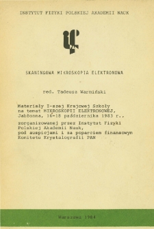 Krajowa Szkoła na temat "Mikroskopia Elektronowa" (1 ; 1983 ; Jabłonna).