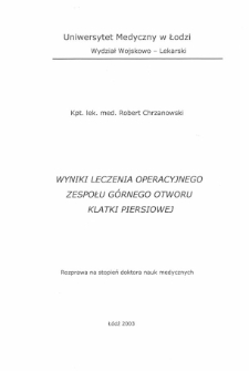 Tytuł: Wyniki leczenia operacyjnego zespołu górnego otworu klatki piersiowej