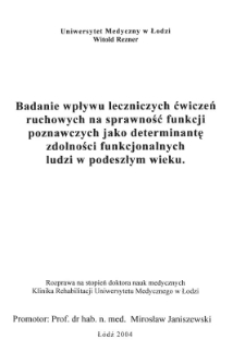 Tytuł: Badanie wpływu leczniczych ćwiczeń ruchowych na sprawność funkcji poznawczych jako determinantę zdolności funkcjonalnych ludzi w podeszłym wieku