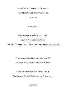 Title: Ocena wyników leczenia dystonii mięśniowej talamotomią i palidotomią sterotaktyczną