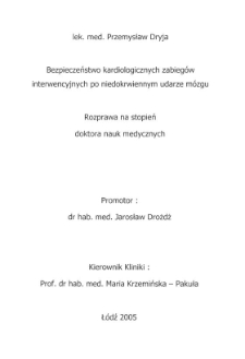 Tytuł: Bezpieczeństwo kardiologicznych zabiegów interwencyjnych po niedokrwiennym udarze mózgu