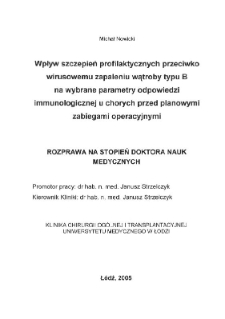 Tytuł: Wpływ szczepień profilaktycznych przeciwko wirusowemu zapaleniu wątroby typu B na wybrane parametry odpowiedzi immunologicznej u chorych przed planowymi zabiegami operacyjnymi