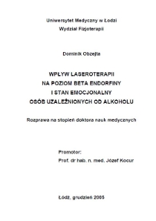 | Obzejta, Dominik, 2005, Wpływ laseroterapii na poziom beta endorfiny i stan emocjonalny osób uzależnionych od alkoholu | Sep 21, 2021 |