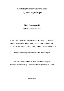 Tytuł: Pomiar i analiza środowiska akustycznego oraz badania jego wpływu na stan słuchu u techników obsługi samolotów odrzutowych