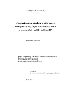 Tytuł: "Poszukiwanie związków o aktywności biologicznej w grupie pochodnych azoli z jonami platyny (II) i palladu (II)
