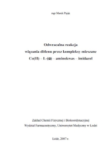 | Pająk, Marek, 2007, Odwracalna reakcja wiązania ditlenu przez kompleksy mieszane Co(II) - L-(alfa) - aminokwas - imidazol | Sep 28, 2021 |