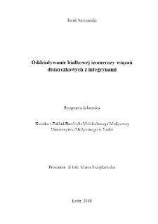 Tytuł: Oddziaływanie białkowej izomerazy wiązań disiarczkowych z integrynami