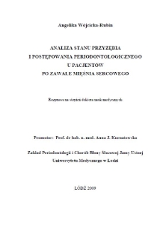 Tytuł: Analiza stanu przyzębia i postępowania periodontologicznego u pacjentów po zawale mięśnia sercowego