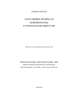 | Kociak, Barbara, 2010, Ocena źródeł informacji elektronicznej w stomatologii i medycynie | Oct 15, 2021 |