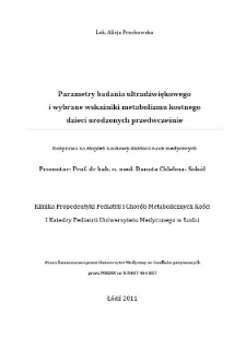 Title: Parametry badania ultradźwiękowego i wybrane wskaźniki metabolizmu kostnego dzieci urodzonych przedwcześnie
