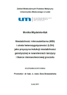 Tytuł: Niestabilność mikrosatelitarna (MSI) i utrata heterozygotyczności (LOH) jako przyczyna indukcji niestabilności genetycznej w nowotworach tarczycy i tkance nienowotworowej gruczołu