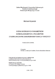 Tytuł: Ocena wybranych parametrów kardiologicznych u pacjentów z subklinicznymi zaburzeniami funkcji tarczycy