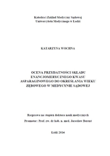 Title: Ocena przydatności składu enancjomerycznego kwasu asparaginowego do określania wieku zębowego w medycynie sądowej