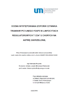 Title: Ocena występowania izoform czynnika transkrypcyjnego FOXP3 w limfocytach regulatorowych T CD4+ u chorych na astmę oskrzelową
