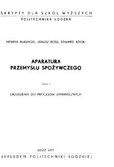 Tytuł: Aparatura przemysłu spożywczego. Część I : urządzenia do procesów dynamicznych