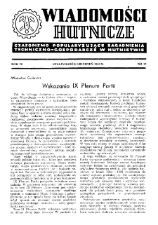 | Wiadomości Hutnicze : organ C.Z.P.H. [Centralnego Zarządu Przemysłu Hutniczego] R. IX nr 12 [1953] | 2023-01-05 |