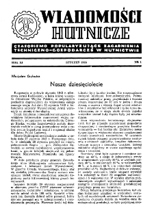 | Wiadomości Hutnicze : organ C.Z.P.H. [Centralnego Zarządu Przemysłu Hutniczego] R. XI nr 1 [1955] | 2023-01-05 |