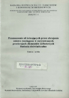 Publikacja pod patronatem Sekcji Konstrukcji Betonowych Komitetu Inżynierii Lądowej i Wodnej PAN ; Skład tekstu i opracowanie graficzne: Filipczak, J., Wojda, Adam W. ; Badania sponsorowane przez Komitet Badań Naukowych Zespół KBN: S1 w ramach umowy nr PB00093/S1/93/04 Projekt badawczy numer 7 S103 01404 ; Jest częścią serii : Badania Doświadczalne Elementów i Konstrukcji Żelbetowych, zeszyt nr 4 - 1995 r.
