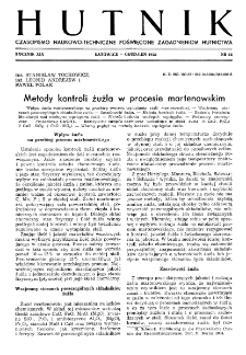 Title: Hutnik : miesięcznik Związku Polskich Hut Żelaznych R. XIX nr 12 (1952)