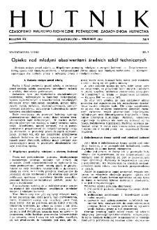 Tytuł: Hutnik : miesięcznik Związku Polskich Hut Żelaznych R. XX nr 9 (1953)