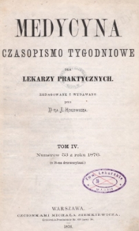 Title: Medycyna ; Medycyna : czasopismo tygodniowe dla lekarzy praktycznych 1876, T. IV