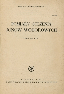 chemia ; elektrolity ; pomiar stężenia jonów wodorowych ; hydroliza ; Opiniodawcy: dr inż. Henryk Całus, mgr inż. Irena Majcherowa ; Redaktor naukowy PWT: mgr Halina Zamoyska ; Tytuł oryginału: Die Wasserstoffionenmessung, prof. dr Gunther Lehmann. Leipzig 1948