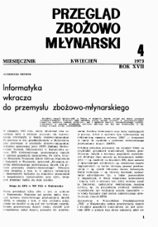 Tytuł: Przegląd Zbożowo Młynarski Rok XVII Nr 4 (1973) ; Przegląd Zbożowo Młynarski Rok XVII Nr 4 (1973)