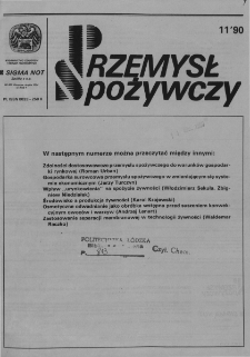 Title: Przemysł Spożywczy : Organ Stowarzyszenia Naukowo-Technicznego Inżynierów i Techników Przemysłu Spożywczego Tom XLIII, nr 11 (1990)