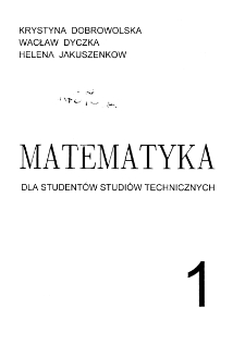 | Dobrowolska, Krystyna (1939- )., 2002, Matematyka : dla studentów studiów technicznych. Cz. 1 | 2020-03-19 |