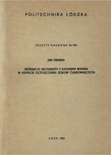 Title: Interakcje sacharozy z kationem wapnia w aspekcie oczyszczania soków cukrowniczych ; Zeszyty Naukowe. Rozprawy Naukowe nr 137 (1990)
