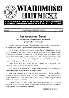 | Wiadomości Hutnicze : organ C.Z.P.H. [Centralnego Zarządu Przemysłu Hutniczego] R. IX nr 6 [1953] | 2023-01-05 |