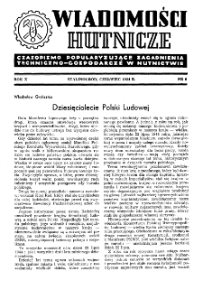 Title: Wiadomości Hutnicze : organ C.Z.P.H. [Centralnego Zarządu Przemysłu Hutniczego] R. X nr 6 [1954]