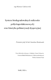 Tytuł: Synteza biodegradowalnych mikrosfer poli(e-kaprolaktonowych) oraz kinetyka polimeryzacji dyspersyjnej