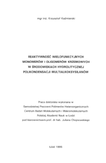 Title: Reaktywność wielofunkcyjnych monomerów i oligomerów krzemowych w środowiskach hydrolitycznej polikondensacji multialkoksysilanów