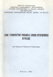 | Stan i perspektywy produkcji kwasu cytrynowego w Polsce : Wałcz 15-16 września 1988 | 2021-07-14 |