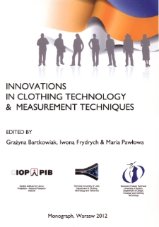 The monograph contains publications submitted to the 10 th JointInternational Scientific Conference CLOTECH 2012 on 'Innovative materials &technologies in made-up textile articles, protective clothing and footwear' ; ; Partnerzy konferencji : 1. Central Institute for Labour Protection - National Research Institute2. technical University of Lodz, Department of Clothing Technology and Textronics3. Kazimierz Pułaski Technical University of Radom. Departmemnt of Design, Footwear and Clothing Technology ; Red. nauk. Wydziału : Kowalski, Krzysztof ; Red. serii : Wodziński, Piotr